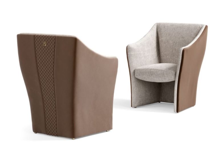 Upholstered in leather and fabric with stitching