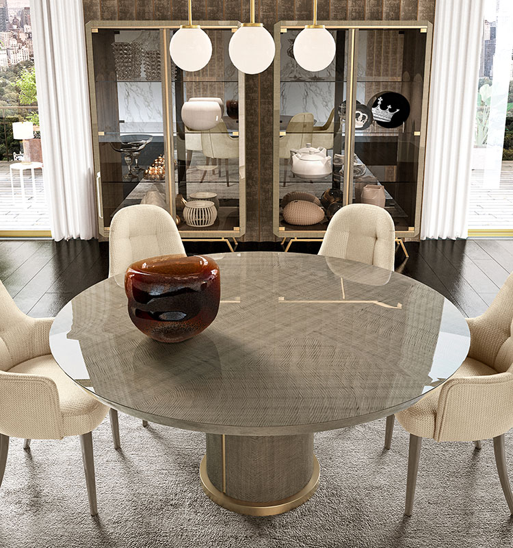 Top in marble, glass, or wood.